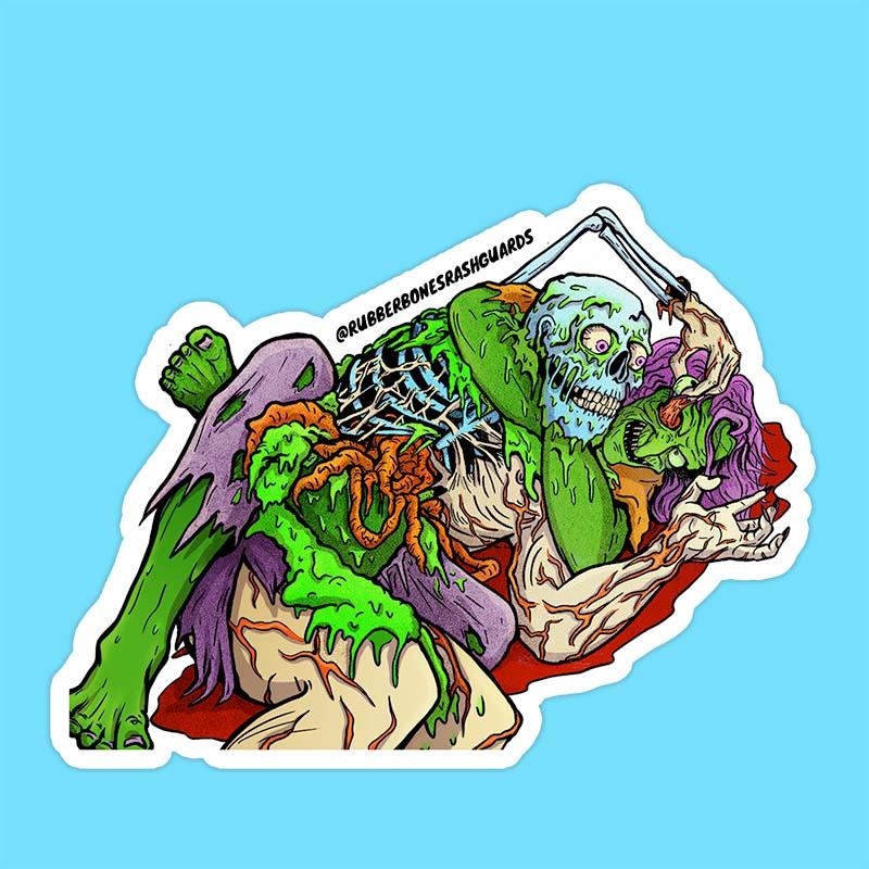 Rubber Bones’ Art Stickers Collection brings the bold designs from our BJJ rash guards to your everyday essentials. These 3” premium vinyl stickers feature vibrant, eye-catching artwork, making them perfect for personalizing water bottles, laptops, and gear. Durable and long-lasting, they let you show off your love for Brazilian Jiu Jitsu wherever you go.