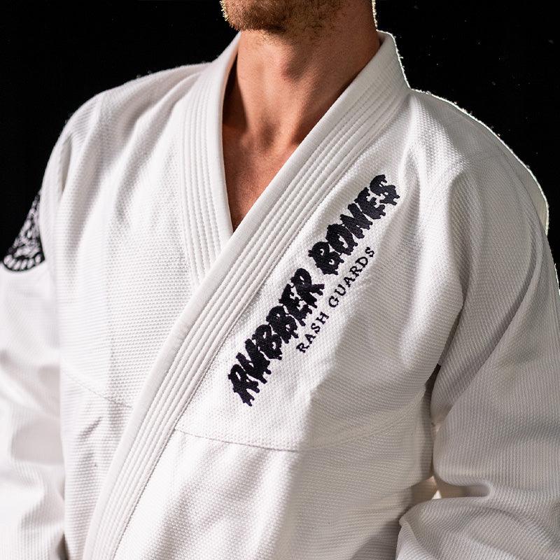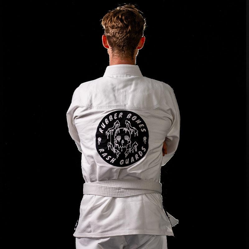 Rubber Bones’ Gi Collection offers premium Brazilian Jiu Jitsu gear that blends durability with bold style. Featuring high-quality BJJ gis, durable belts, and unique patches, this collection is crafted for training, competition, and off-the-mat expression. Designed with the same creativity and attention to detail that define Rubber Bones, these pieces let you showcase your passion for BJJ in every roll.