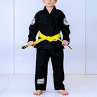 Equip your young BJJ athlete with the IBJJF approved Kids Bare Bones Gi from Rubber Bones. Designed for Brazilian Jiu Jitsu training, this lightweight and durable gi is perfect for beginners and experienced youth practitioners alike. Featuring a sleek and minimalist design, the gi is crafted from high-quality materials to ensure lasting comfort and performance. Whether in training or competition, the Kids Bare Bones Gi provides style and reliability for every roll.