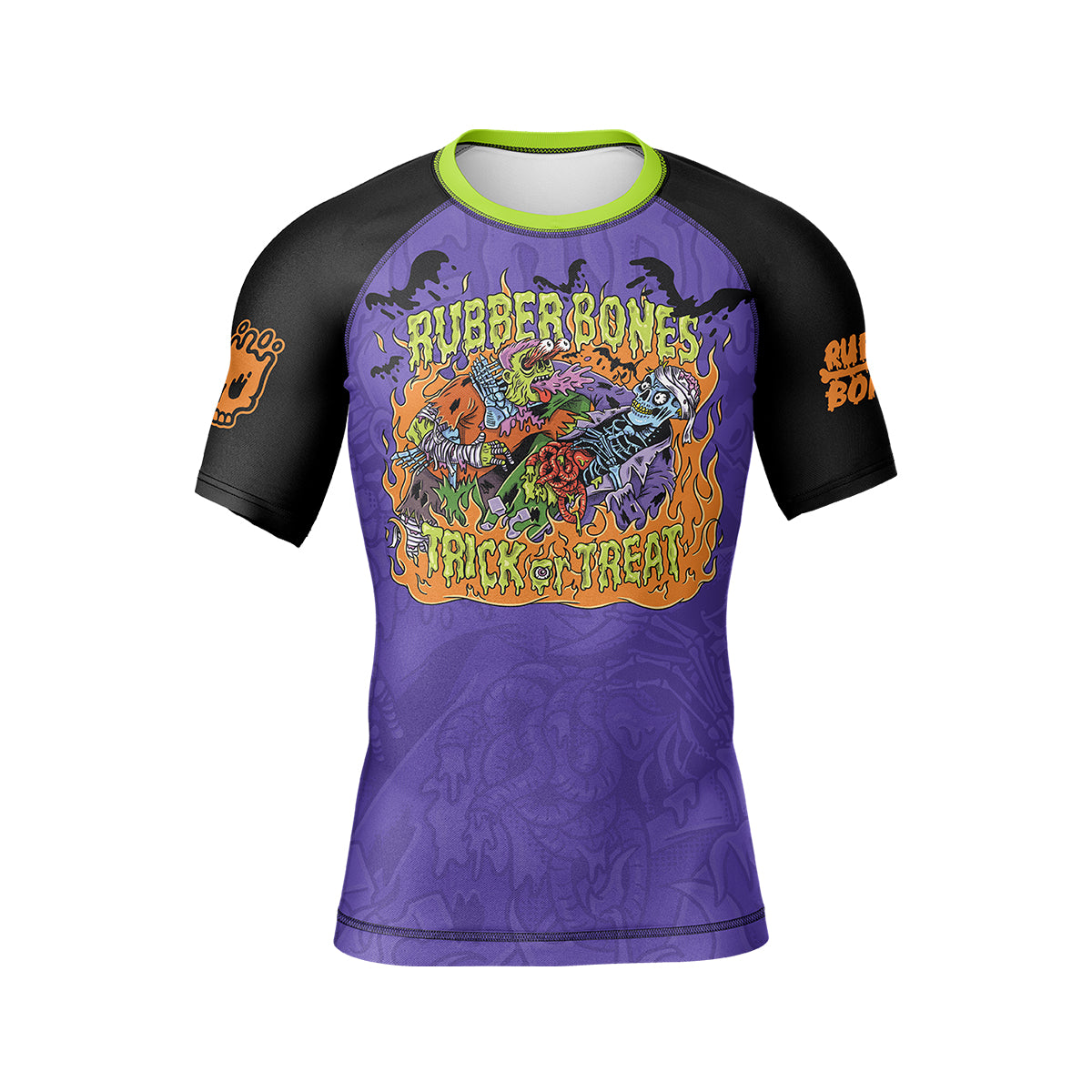 Step onto the mats in Halloween spirit with the Rubber Bones Trick or Treat Rash Guard — a limited-edition design celebrating everything creepy, colorful, and fun about spooky season. Featuring original hand-drawn art by Rubber Bones.