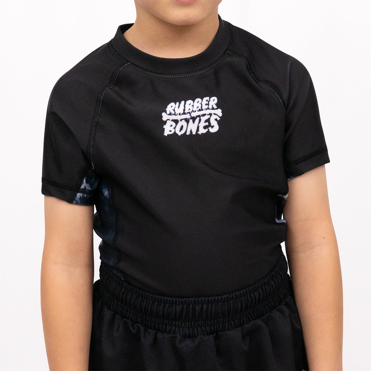 Made to handle the toughest training sessions, it’s lightweight, durable, and full of attitude — just like the kids who wear it. Designed by Rubber Bones, this rash guard turns jiu-jitsu passion into wearable art that’s anything but ordinary.